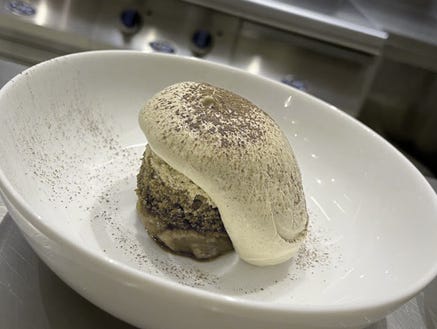 Tiramisu à l’orge maltée, champignon de Paris, marié au Stout fumé vanille de la Brasserie De Dochter Van de Korenaar.