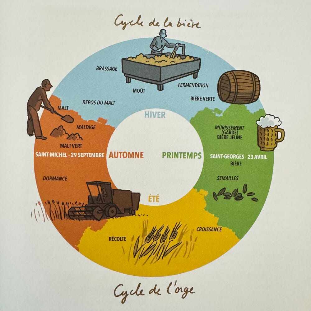 D’abord, rappelons que le cycle de fabrication de la bière était auparavant, avant l’arrivée du froid industriel, c'est-à-dire avant la fin du XXème siècle, liée au rythme des saisons.